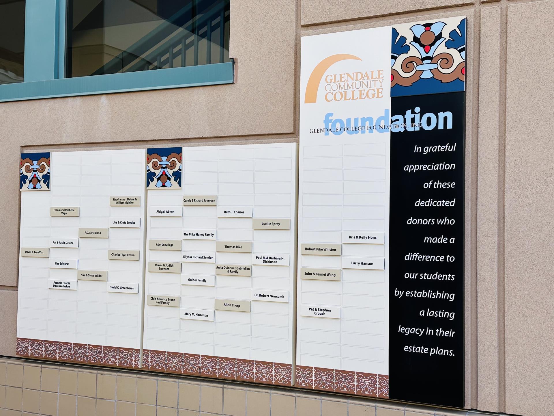 Bequests that name Glendale College Foundation, Inc. enable you and your family to leave a lasting legacy on this campus. If you let us know what you are intending to do, we can help to make sure that your gift is structured properly to accomplish what you have intended. We can also give you recognition during your lifetime, if you wish, with a tile on our Legacy Donor Wall. Please call Paola Santana, Executive Director, at (818) 551-5196 to help you choose the option that will help to best meet your financial, tax and estate planning goals.