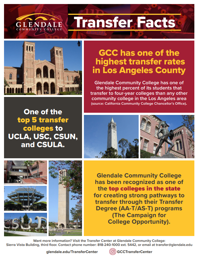 - Glendale Community College has one of the highest percent of its students that transfer to four-year colleges than any other community colleges in the Los Angeles area. (source: California Community College Chancellor's Office)